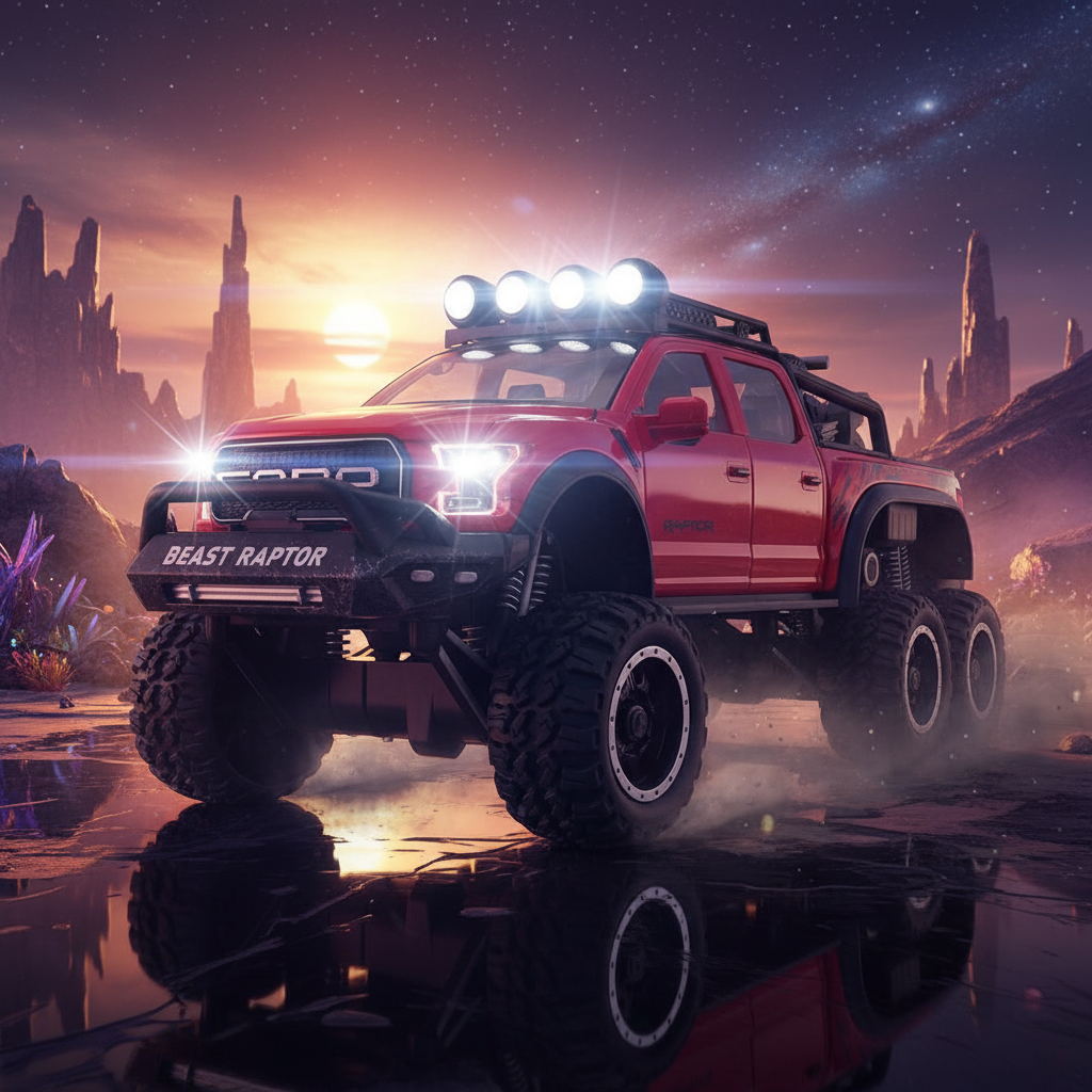 - 6×6 Refitted Pickup Design: Inspired by an off-road F150 cross-country pickup, featuring aggressive styling and a rugged stance.